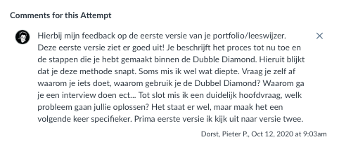 Studenten verwerken projecten en de daarbij behorende onderzoeken in een portfolio, de bewijsstukken die daarin te vinden zijn beschouwen wij als geldig wat betekend dat ik daar veelal feedback op geeft.